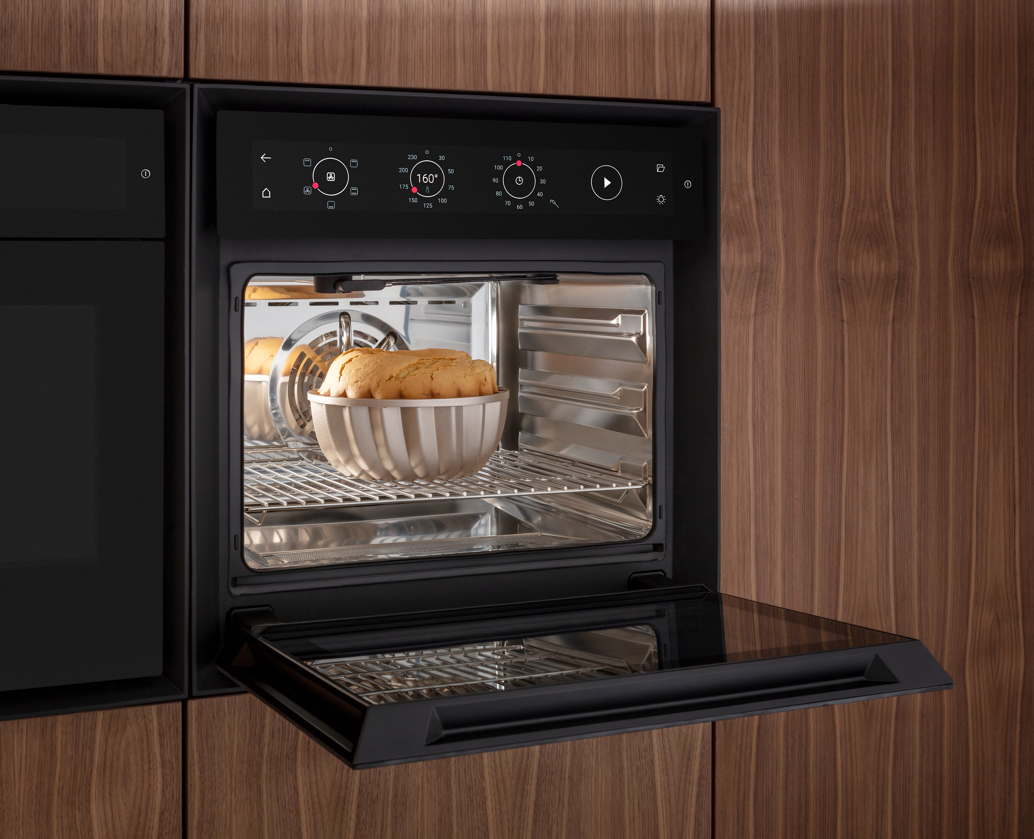 Der BORA X BO kann braten, backen, dämpfen und vieles mehr, ist dabei kinderleicht bedienbar und reinigt sich nach dem Gebrauch wieder selbst blitzblank. Seine automatische Dampfabsaugung führt den Dampf vor dem automatischen Öffnen der Tür entfeuchtet, abgekühlt und gefiltert nach hinten ab. Die Steuerung erfolgt intuitiv über ein riesiges 19-Zoll-Touch-Display, das man bei Bedarf auch hochklappen kann. So geht Küche bei Bora und Föger. Ob knusprige Braten, köstliches Gemüse oder luftig-leichte, goldbraune Croissants: Dank seiner schonend-gleichmäßigen Dampferzeugung liefert der BORA X BO perfekte Garergebnisse – selbst wenn du drei gefüllte Bleche auf einmal hineinschiebst.