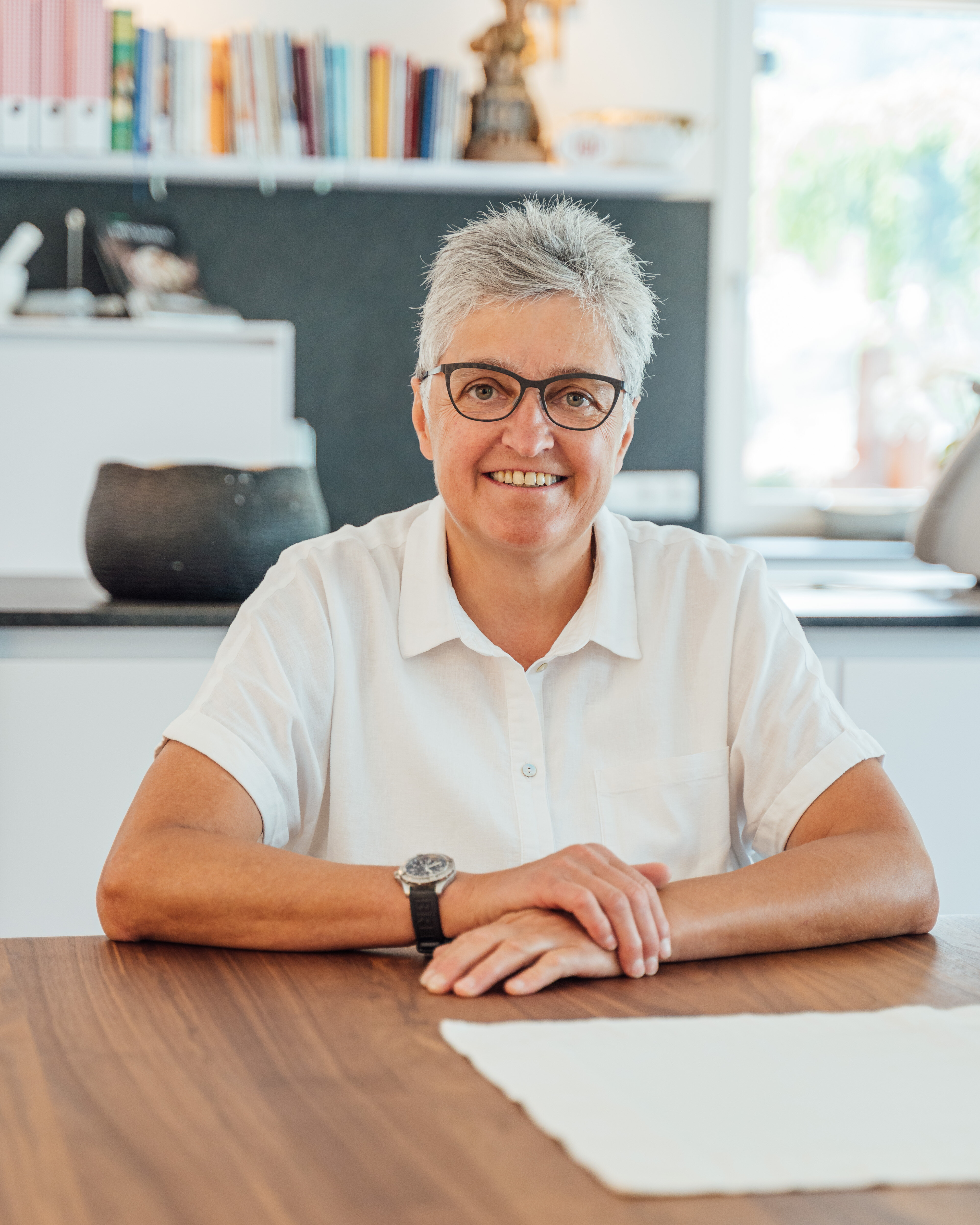„Seit einigen Jahren veranstalte ich als leidenschaftliche Köchin Thermomix-Kochvorführungen. Dies wurde perfekt umgesetzt durch eine freistehende Kochinsel mit ausreichend Steckdosen rund um die Insel sowie einen angrenzenden Barbereich. Die optimale Lösung für gemeinsame Kochabende. Hinter meiner Speistüre, die in die Hochschrankfront integriert wurde, versteckt sich eine kleine Arbeitsküche, die weitere Standgeräte und ein Spülbecken beinhaltet. Ich bereite dort z. B. leckere Marmeladen vor – an dieser Stelle nochmals Danke für die Kostprobe!
