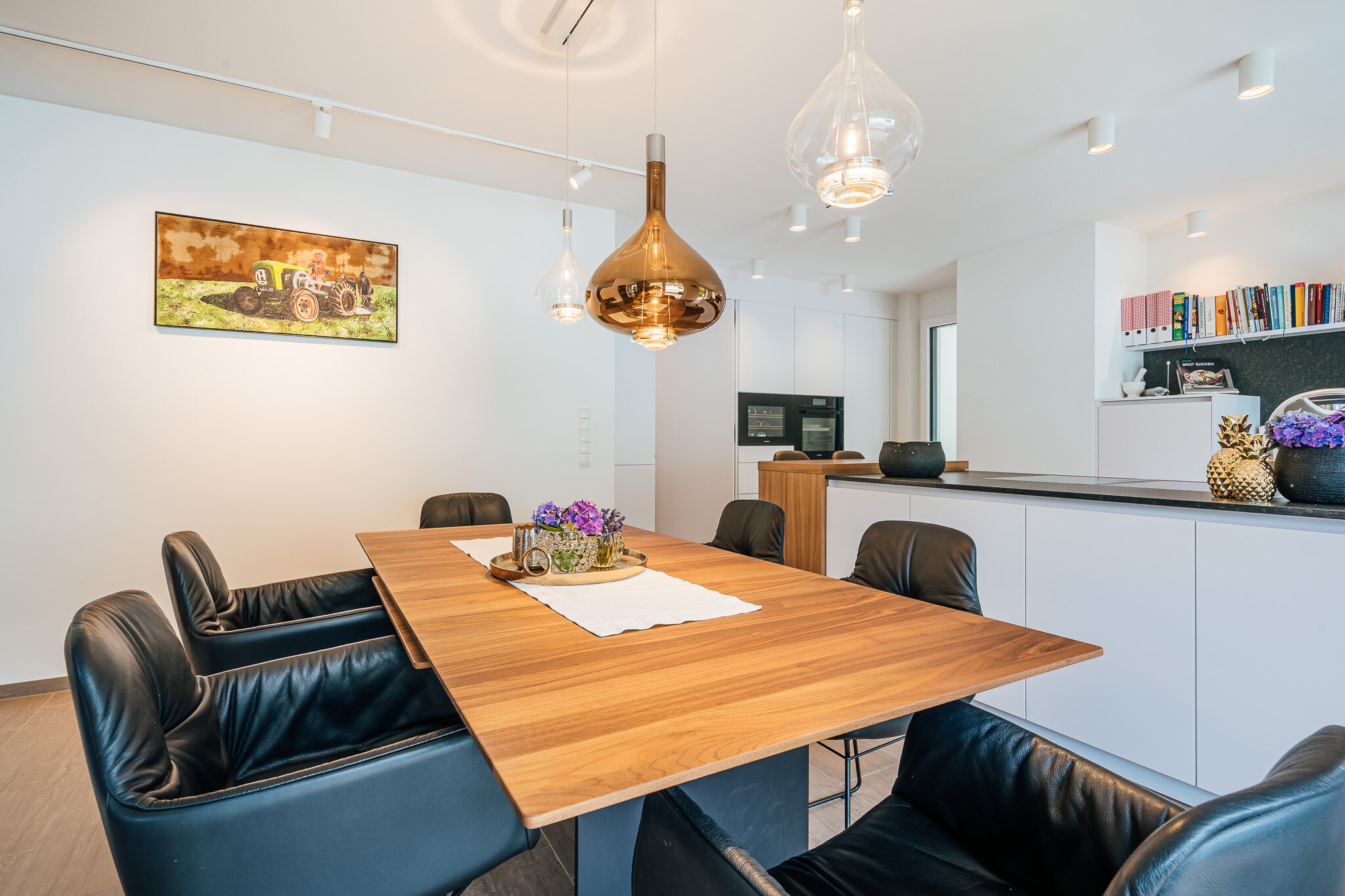 Wenn einmal mehr Gäste kommen, dann kann der Esstisch im Handumdrehen vergrößert werden, Weine im Weinkühlschrank sind stehts richtig temperiert und mit den bequemen Esszimmerstühlen steht einem gemütlichen Abend nichts mehr im Weg.“