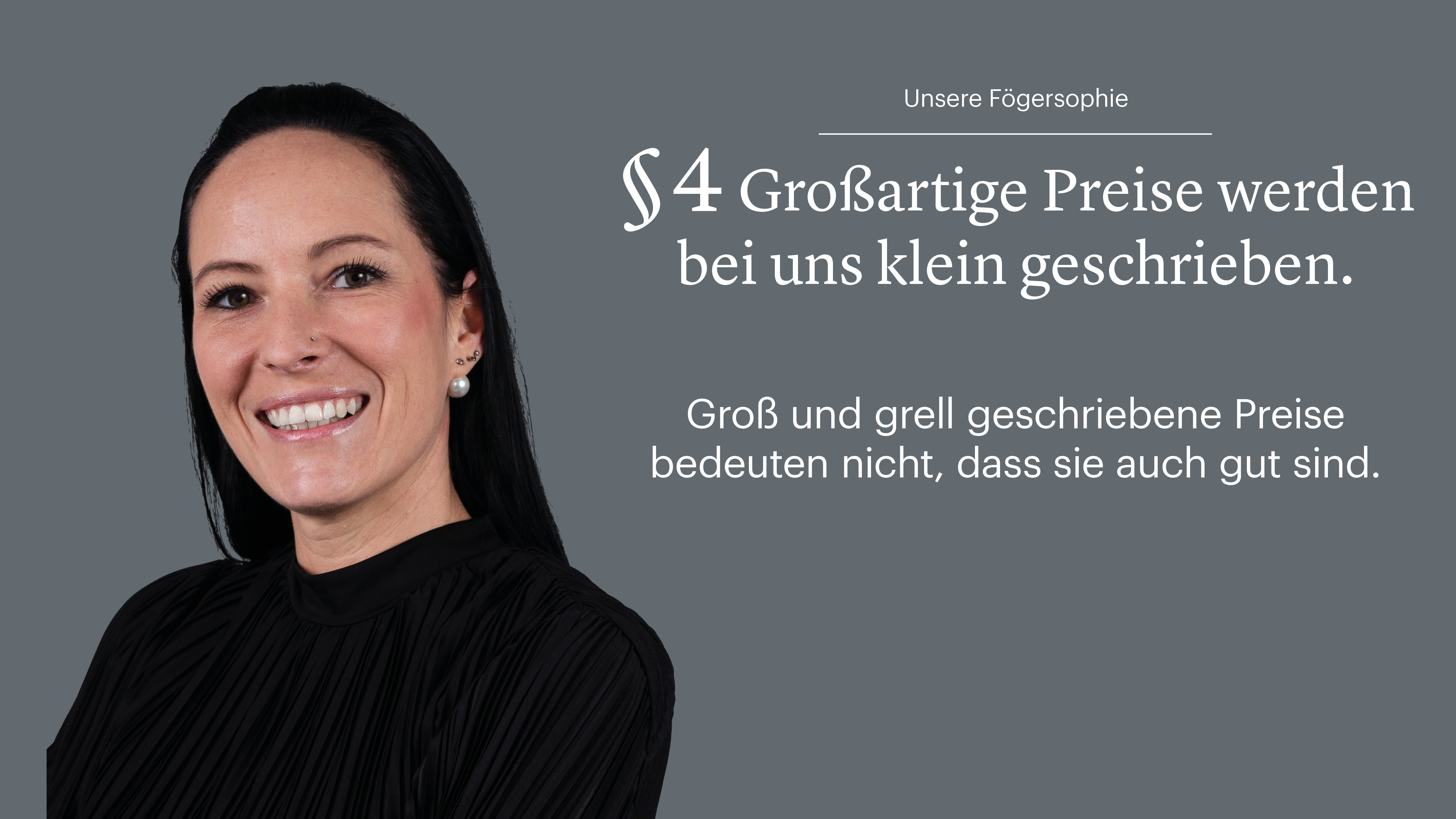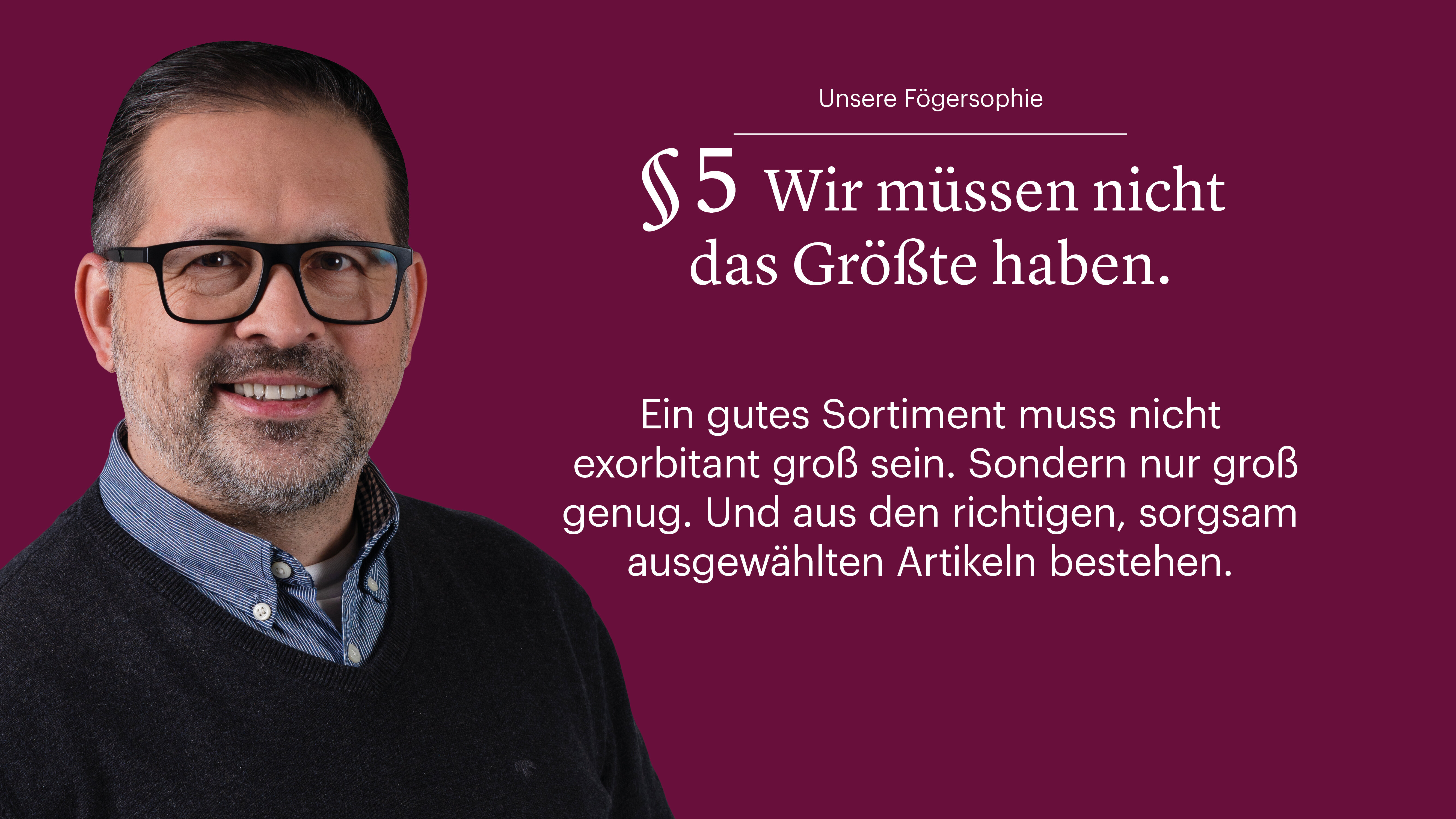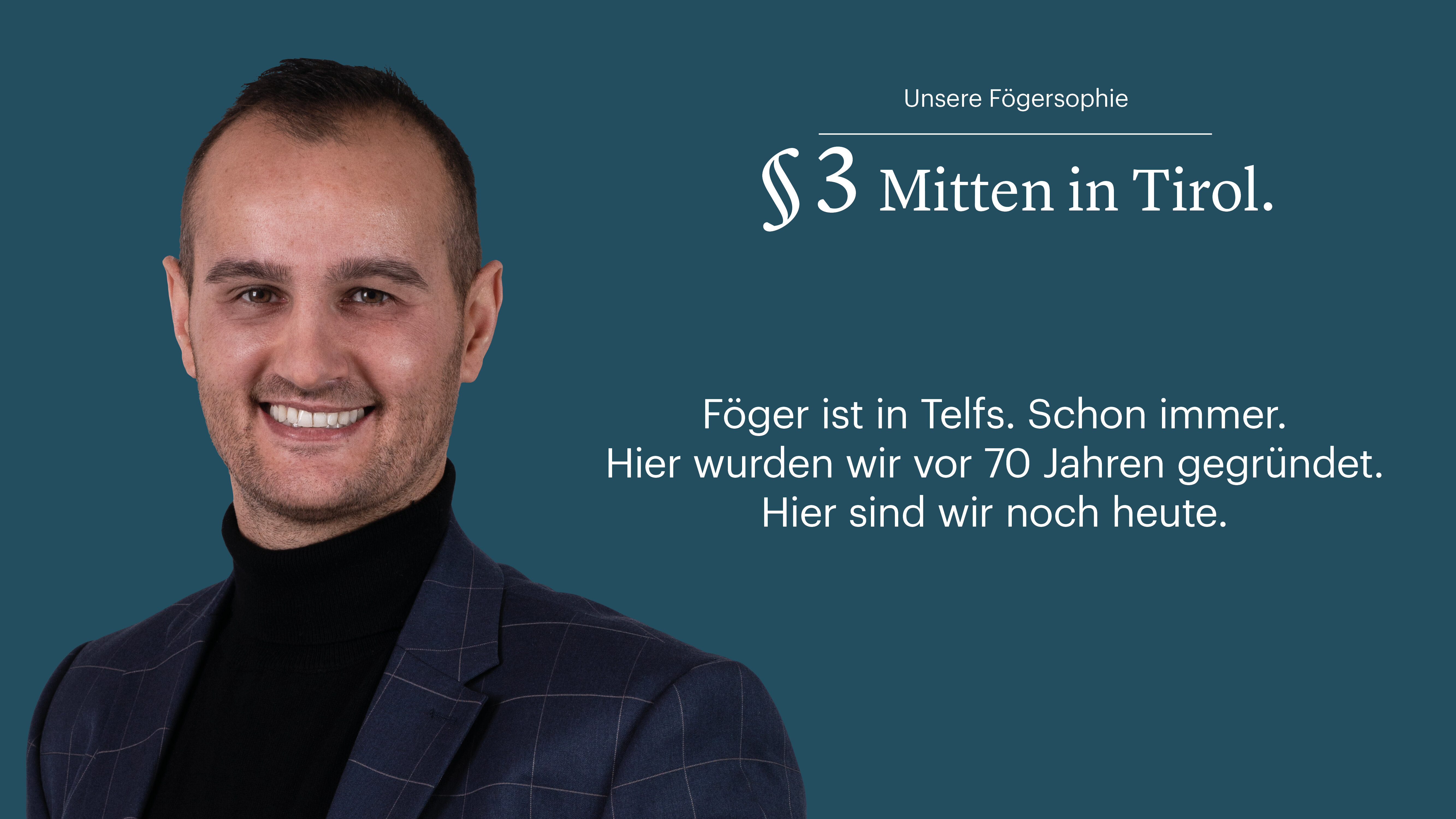 Wir sind einfach Föger. Ganz ohne aufdringliche Preisdarstellungen, frei von konzernpolitischen Spielereien und fernab von Rabattschlachten. Denn wir zeichnen uns durch unsere Einzigartigkeit aus. Schon seit 70 Jahren leben wir diese Überzeugung.”