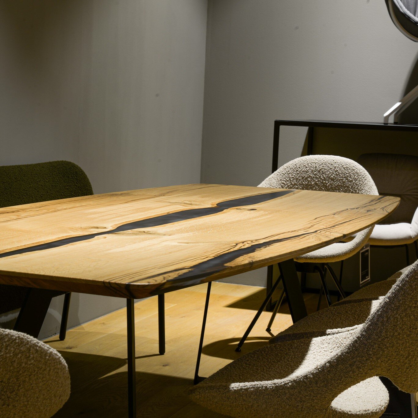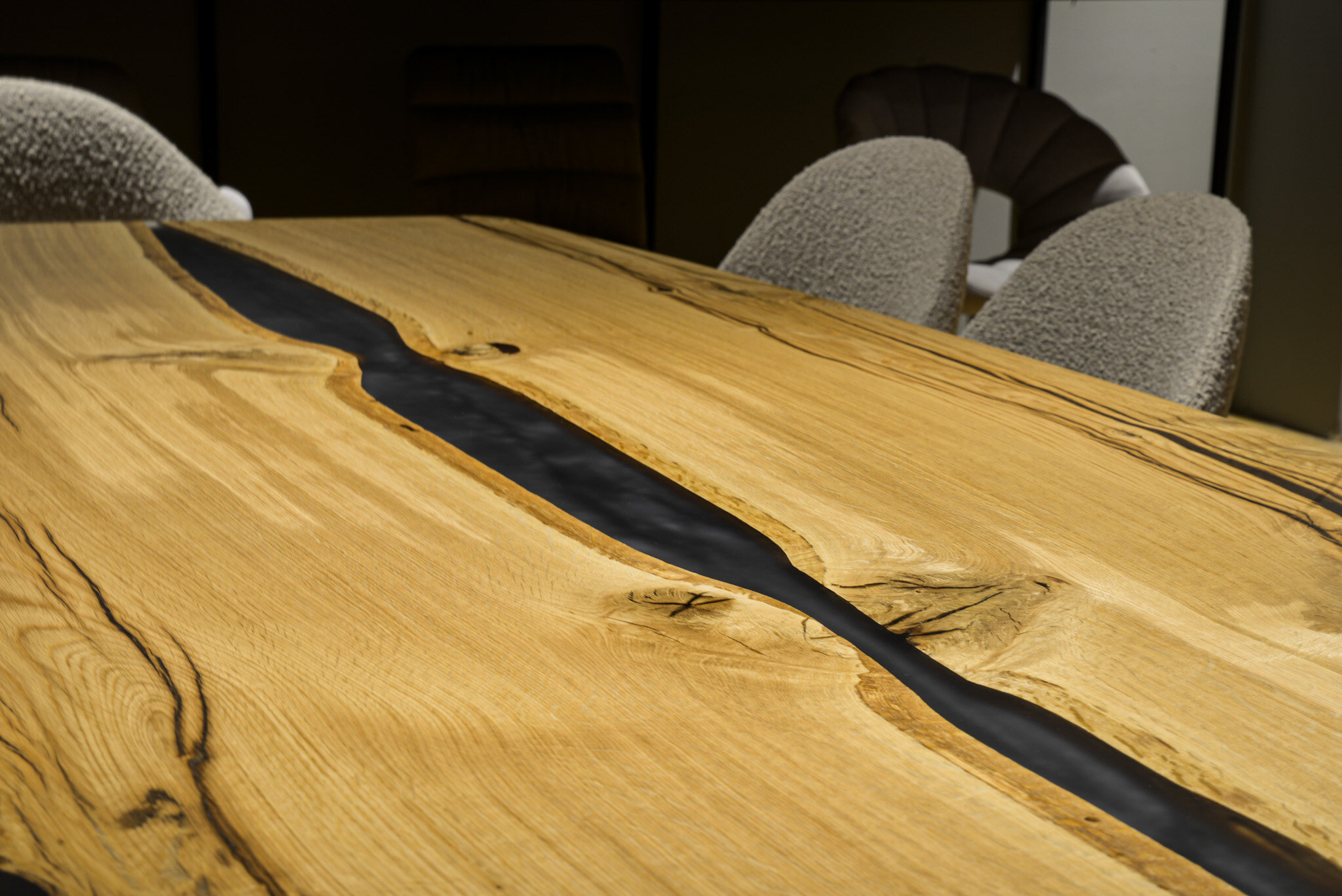Dreikant Esstisch Eiche Epoxidriver leicht schwarz satiniert