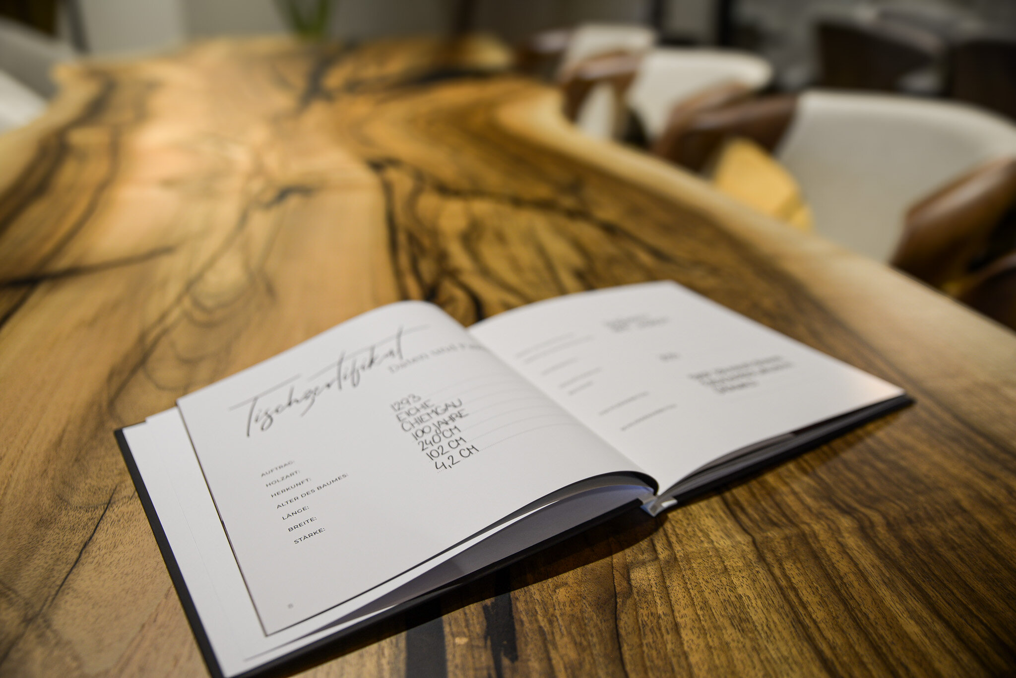 Der Weg von der Auswahl des Baumstamms bis zum fertigen Dreikant Tisch ist aufwendig, aber einzigartig. Nur Bäume, die ihr natürliches Lebensende erreicht haben oder eine Gefahr darstellen, werden ausgewählt. Nach dem Fällen des Baums beginnt die Trocknungsphase: Fünf bis sechs Jahre an der Luft und weitere sechs Monate in einer Trockenkammer. Erst dann beginnt die Produktion, die etwa 12 bis 14 Wochen dauert. Dieser detaillierte Prozess sorgt dafür, dass jeder Tisch nicht nur besonders schön, sondern auch extrem langlebig ist.