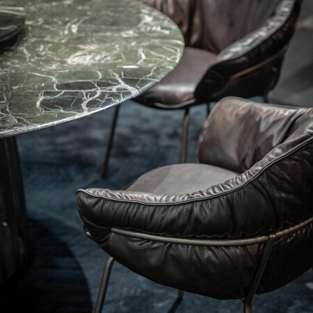So tragen auch die einzelnen Kollektionen Frauennamen und geben ihnen so eine Persönlichkeit. Amelie war der erste Freifrau-Stuhl, der das Licht der Welt erblickte und der bis heute fester Bestandteil der Kollektion ist. Die unterschiedlichen Gestelle für die Stühle, Sessel und Hocker der Amelie-Linie, die im Laufe der Zeit dazukamen – ob Kufen, Freischwinger, Tellerfuß oder Holz mit Kreuzzarge –, passen alle auch auf die zweite Freifrau-Kollektion mit dem anmutigen Namen Leya. Dieser Coup ist nicht nur besonders nachhaltig, er spiegelt auch eine wichtige Facette der Unternehmens-DNA wider: die Kombinationsfreude und das Variantenreichtum jeder Freifrau-Linie, für deren einzelne Produkte jeweils auch eine Vielzahl an hochwertigen Textilien und charakterstarken Ledern zur Auswahl stehen.