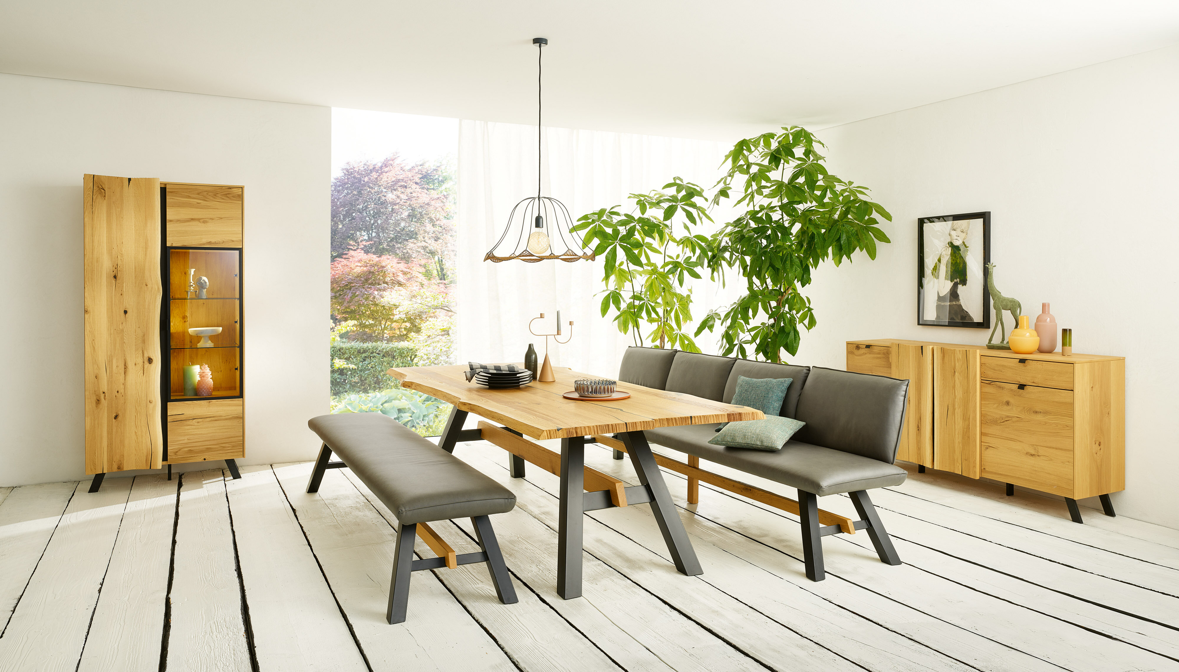 Kaum eine Marke bietet so viele Kombinationsmöglichkeiten wie Schösswender. Essgruppen können individuell zusammengestellt werden – von der Tischplatte über das Gestell bis hin zu den passenden Stühlen oder Bänken. So entsteht ein Ensemble, das perfekt zu deinem Zuhause und deinem Lebensstil passt.