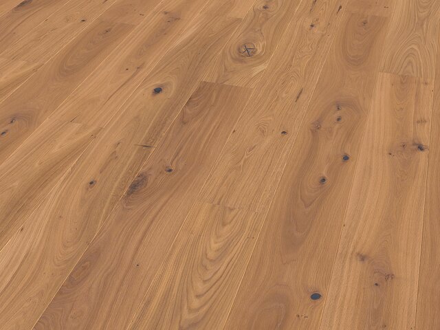 Landhausdiele Eiche Parkett, Astig, leicht weiß, gebürstet, 9.5 x 176 x 2205 mm / Naturholzböden machen etwas mit deinem Zuhause. Und mit dir. Entdecke die Gemütlichkeit, die dir nur Holz bietet. Und das Beste: Die Böden kannst du direkt im kostenlosen Leihtransporter mitnehmen und verlegen.