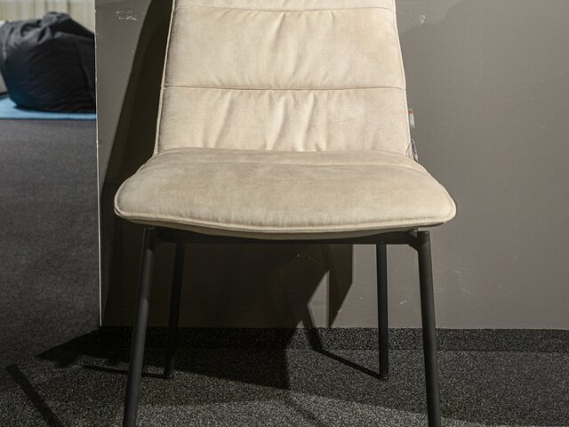 Der Esszimmerstuhl AURORA fügt sich hervorragend in moderne und industrielle Einrichtungsstile ein. Mit seinem schwarzen Metallgestell und den horizontalen Nähten in der Rückenlehne bietet er nicht nur Komfort, sondern auch ein stilvolles Design.